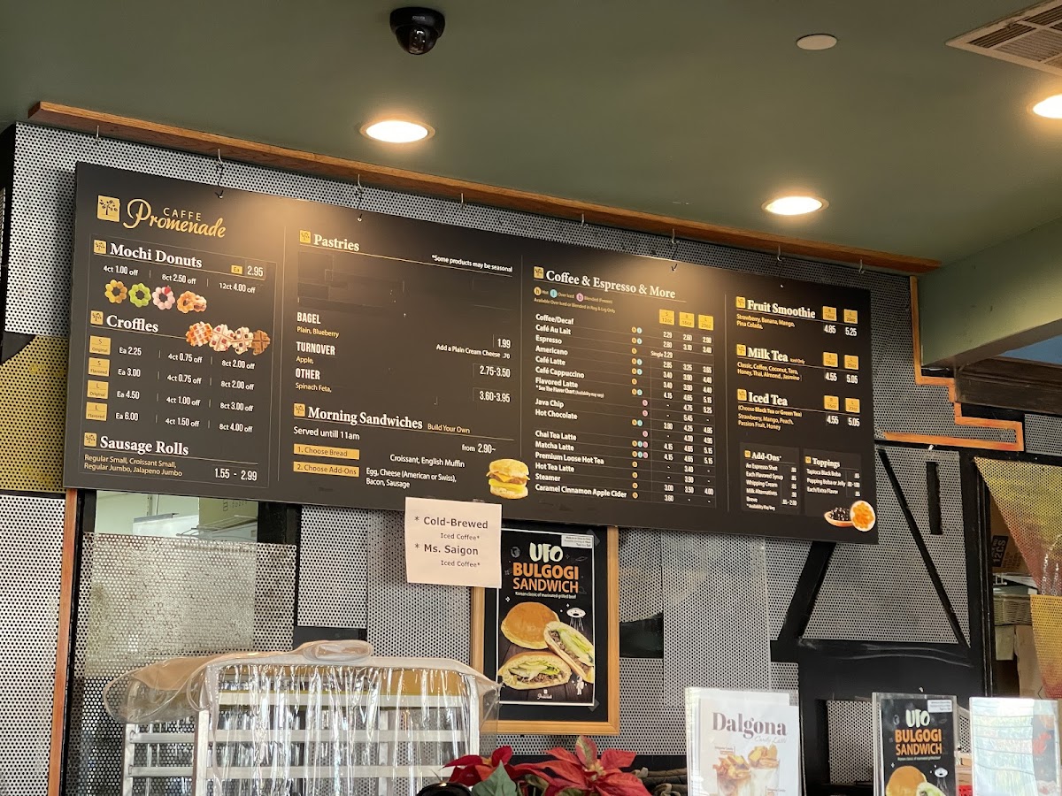 On the menu, you’ll find casual bites like the Bulgogi Sandwich and Chicken Salad Sandwich, perfect for a light lunch or an easy grab-and-go option. Warm pastries such as the Egg and Cheese Croissant, Sausage Roll, and the enticing Chocolate Croffle fit naturally with a cozy atmosphere where you can linger over a cup of coffee or bubble tea.
